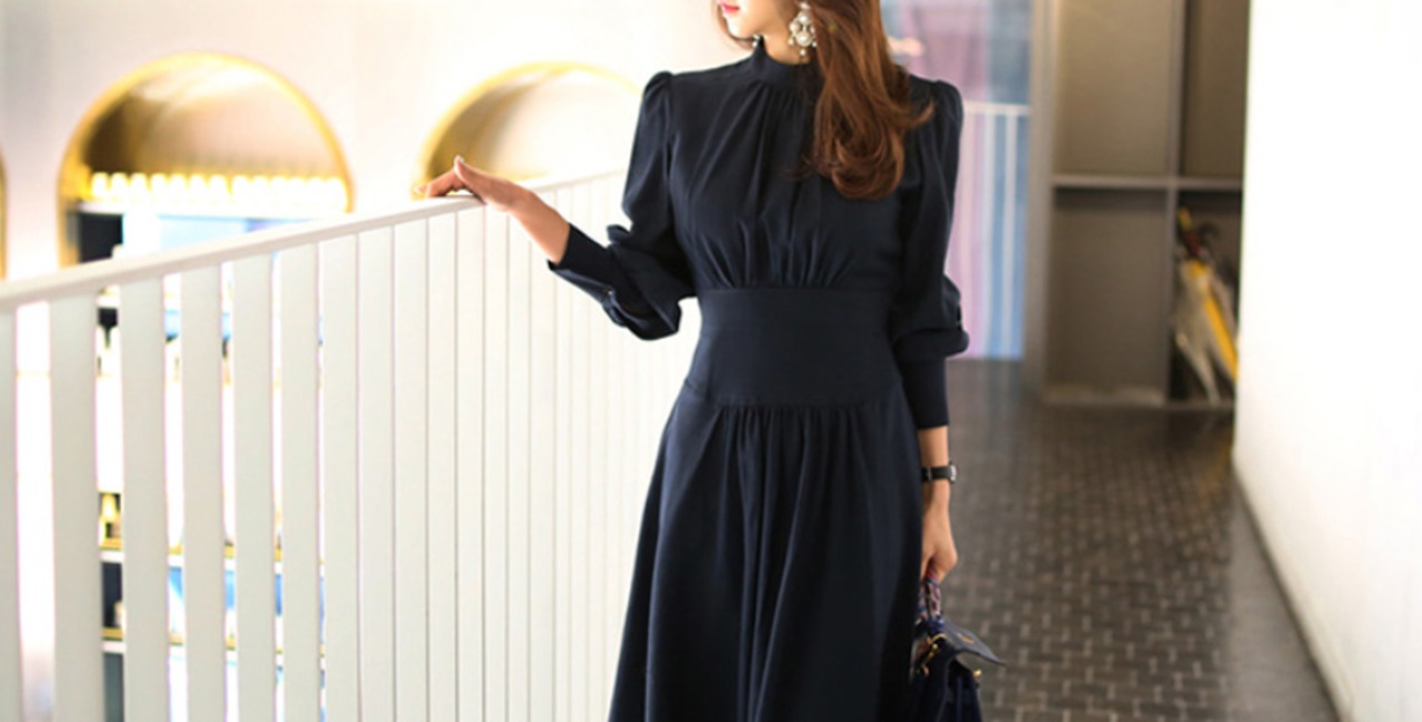 パワーショルダーワンピース ハイウエスト フェミニン きれい目 ネイビー ワンピース ミモレ丈ワンピース 膝下 ミモレ ミモレ丈 袖あり 長袖 パワーショルダー スタンドカラー 切り替えデザイン ウエストマーク きれいめ 大人 上品 おしゃれ お洒落 清楚 大人女子 エレガント 存在感 フォーマル 抜け感 知的 爽やか スマート 無地 春 秋 冬 入学式 入園式 卒業式 卒園式 ロングシーズン 10代 20代 30代 40代 レディース 女性用 ママ 学生 デート お出かけ 女子会 パーティー イベント