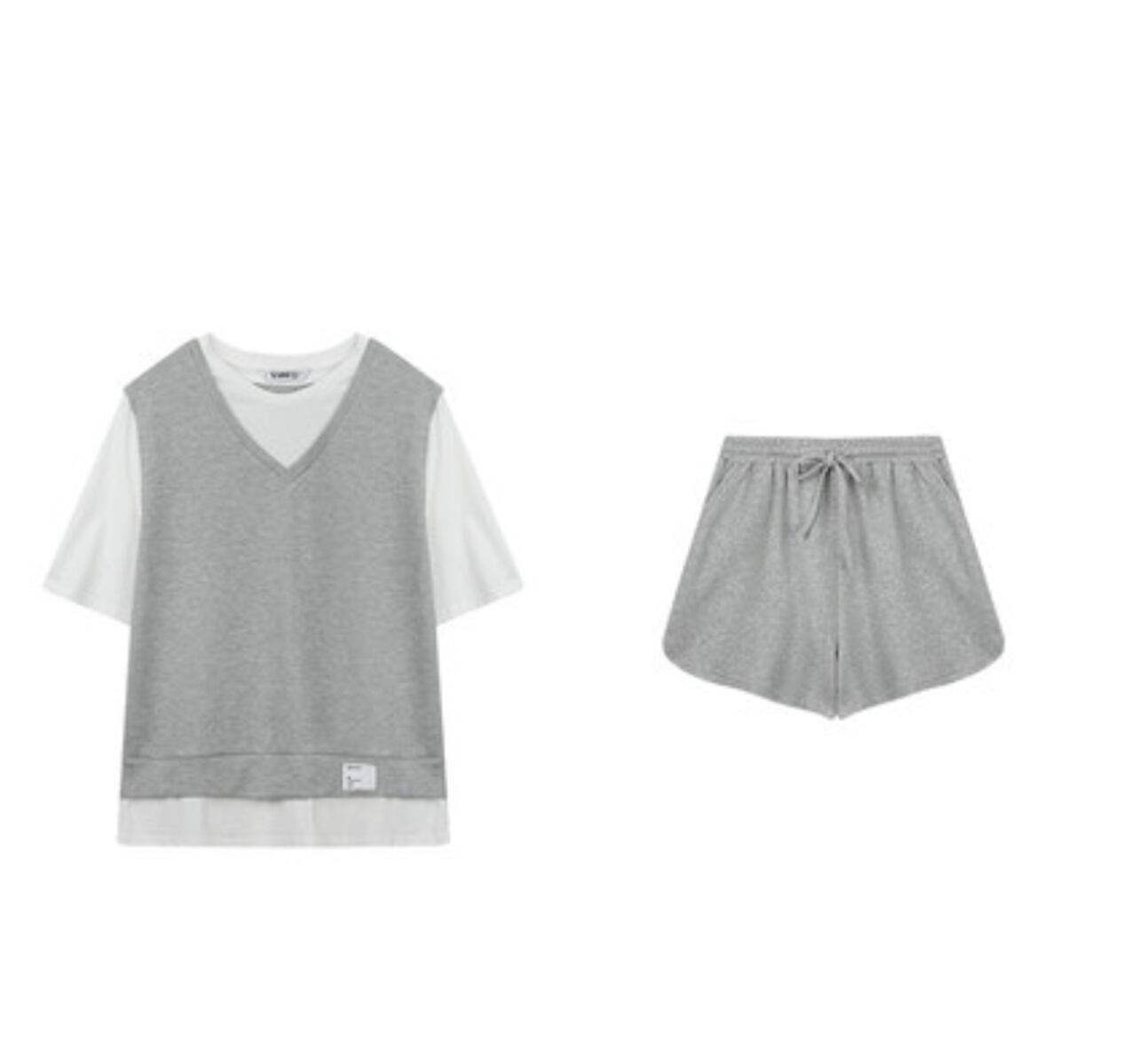 学生風 トップス ボトムス セットアップ Tシャツ ズボン スウェット ショートパンツ ミニ 半袖 Uネック 襟なし Iライン ポリエステル 上下セット 2点セット かわいい シンプル カジュアル おしゃれ かっこいい こなれ感 ラフ メンズライク ボーイッシュ スポーティー 抜け感 無地 春 夏 10代 20代 30代 レディース 学生 女子会 お泊まり 休日 運動 ジム ヨガ アウトドア リゾート 着回し 普段使い 韓国 韓国系 オルチャン ファッション コーデ スタイル 楽ちん モテ 美脚 脚長