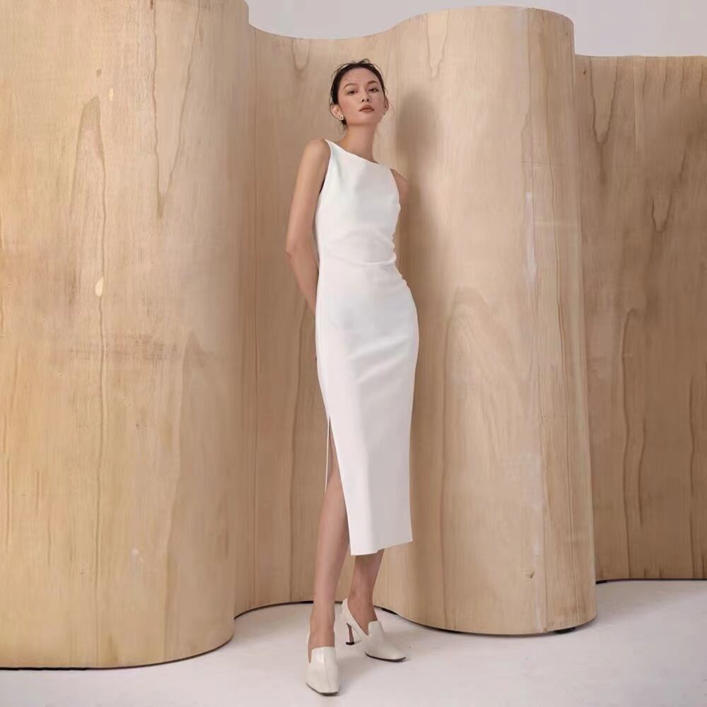 ノースリーブドレス ホワイト ブラック バーガンディ ドレス パーティードレス ミモレ丈ドレス タイトドレス ワンピースドレス ワンピドレス 膝下 ミモレ ミモレ丈 袖なし ノースリーブ ラウンドネック 襟なし スレンダー スレンダーライン タイト スリム 細身 ウエストマーク スリット サイドスリット ハイウエスト きれいめ シンプル 大人 上品 おしゃれ お洒落 大人女子 エレガント 存在感 フォーマル 抜け感 クラシック 王道 お嬢様 清楚 無地 10代 20代 30代 40代 50代 レディース