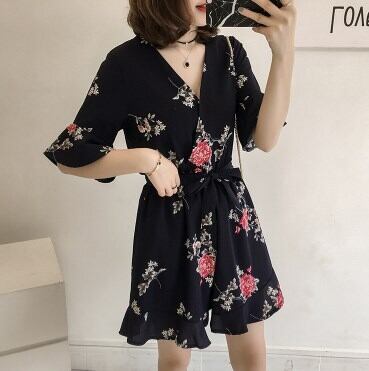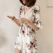 花柄 ジャンプスーツ 大きいサイズ トップス ボトムス パンツ シャツ オールインワン ショートパンツ ショート丈 半袖 5分袖 五分袖 フレアスリーブ Vネック フレア ウエストリボン かわいい 大人可愛い シンプル カジュアル おしゃれ こなれ感 ラフ キュート 個性的 とろみ感 抜け感 柄 花柄 ボタニカル 夏 10代 20代 30代 学生 通学 デート お出かけ 女子会 休日 着回し 普段使い 韓国系 オルチャン ファッション サイズ S M L XL 2XL 3XL 色展開 ホワイト ブルー