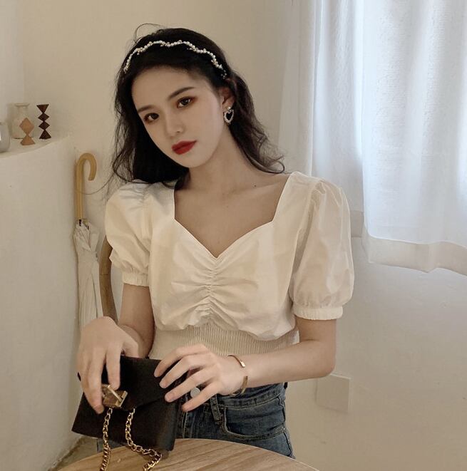 トップス シャーリング カットソー ショート丈 半袖 Vネック きれいめ お洒落 大人可愛い ラブリー セクシー エレガント デート お出かけ M L XL 2XL 3XL 4XL 白 ホワイト 黒 ブラック AS10028