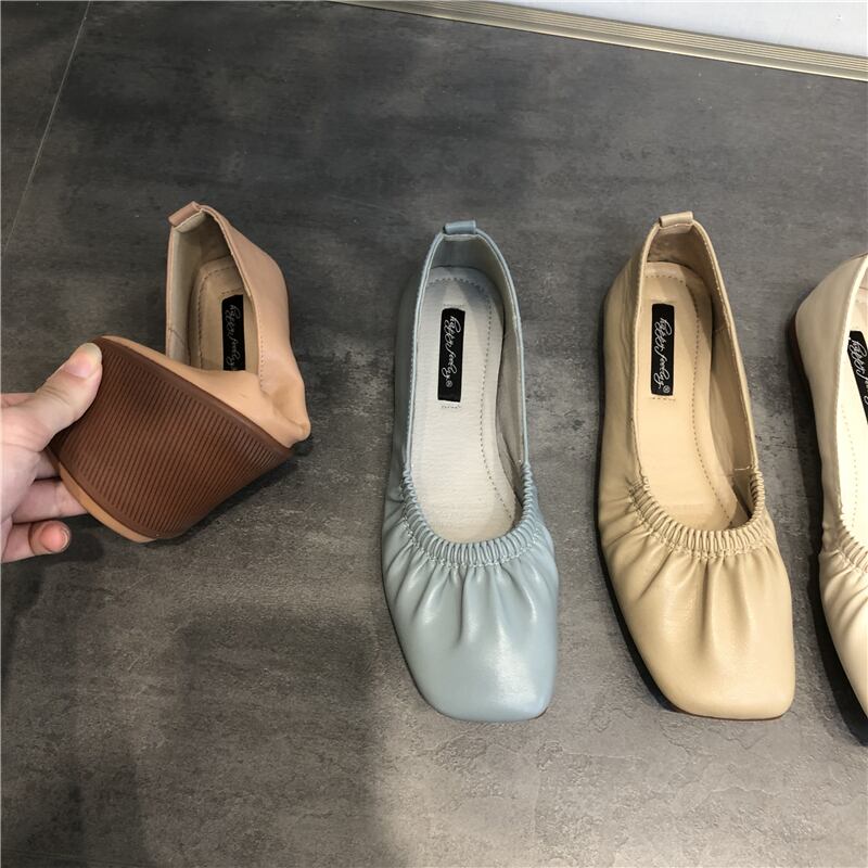 柔らかい素材の歩きやすく疲れにくいぺたんこのパンプス。