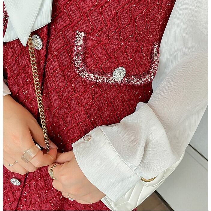 ツーピース ベストスカート トップス スカート ブラウス カットソー 白トップス 膝丈 ミディアム丈 長袖 Vネック ストレート Aライン リボン 2点セット ツーピース かわいい 大人可愛い カジュアル 上品 おしゃれ レトロ ラフ ラブリー キュート ガーリー 抜け感 無地 春 誕生日 10代 20代 学生 デート お出かけ 女子会 パーティー イベント 着回し 普段使い 韓国系 モテ 体系カバー サイズ XL 2XL 3XL 4XL 大きいサイズ ゆったり サイズ 色展開 黒 ブラック 赤 レッド