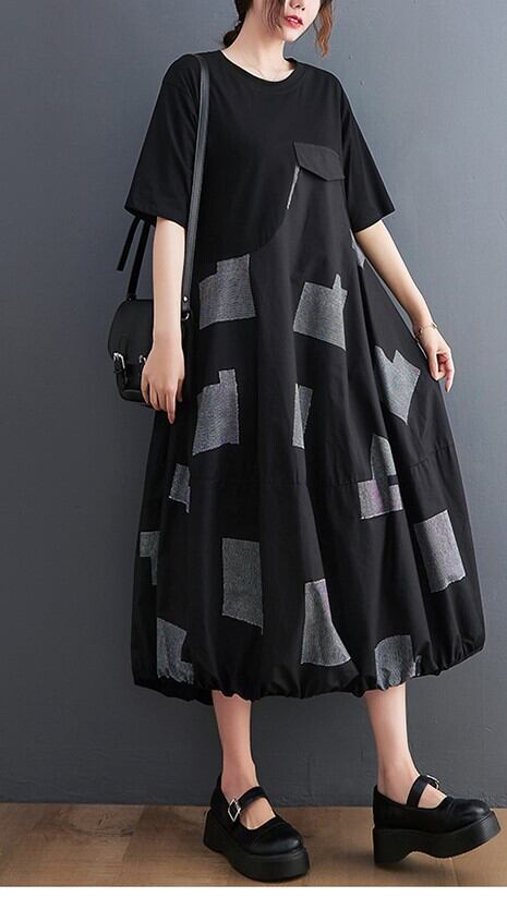 個性的 スカート ワンピース プルオーバー ロングスカート ロング ロング丈 袖あり 半袖 ラウンドネック 襟なし ワイド Aライン ポケット かわいい 大人可愛い カジュアル おしゃれ 大人女子 こなれ感 ラフ ラブリー キュート 個性的 モダン 存在感 抜け感 ドット柄 夏 20代 レディース 女性用 通学 デート お出かけ 休日 普段使い 韓国系 ファッション コーデ スタイル 楽ちん モテ 体系カバー インスタ映え サイズ L 大きいサイズ 大きめ ゆったり 白 黒