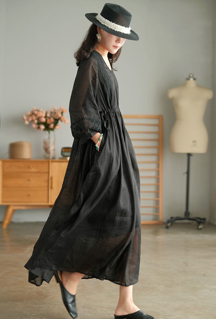 ナチュラルテイスト ワンピース ロングワンピース 膝下 ロング ロング丈 袖あり 7分袖 七分袖 Vネック 襟なし レース 刺繍 ウエストマーク ハイウエスト 透け感 薄手 かわいい 大人可愛い きれいめ 大人 上品 おしゃれ お洒落 アジアン エスニック 清楚 大人女子 こなれ感 ラブリー キュート ガーリー 抜け感 ナチュラル 爽やか 無地 春 夏 10代 20代 30代 40代 レディース 女性用 ママ 学生 デート お出かけ 女子会 休日 リゾート 旅行 海 レストラン お呼ばれ お茶会