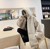 レディース アウター ブルゾン ジャケット オーバーフィット フェイク ミンクファー パーカー ジップアップ TS10890