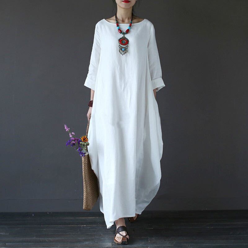 個性的 スカート ワンピース プルオーバー シャツワンピース ワンピドレス ロング ロング丈 袖あり 7分袖 七分袖 ラウンドネック 襟なし ワイド Aライン リネン 薄手 大人可愛い シンプル カジュアル 上品 エスニック 大人可愛い こなれ感 ラフ 個性的 モダン 抜け感 無地 春 秋 10代 20代 レディース 女性用 デート お出かけ 休日 普段使い ファッション 楽ちん モテ 体系カバー トレンド L XL 2XL 3XL 4XL 5XL 大きいサイズ 大きめ ゆったり ゆる 白 黒 赤