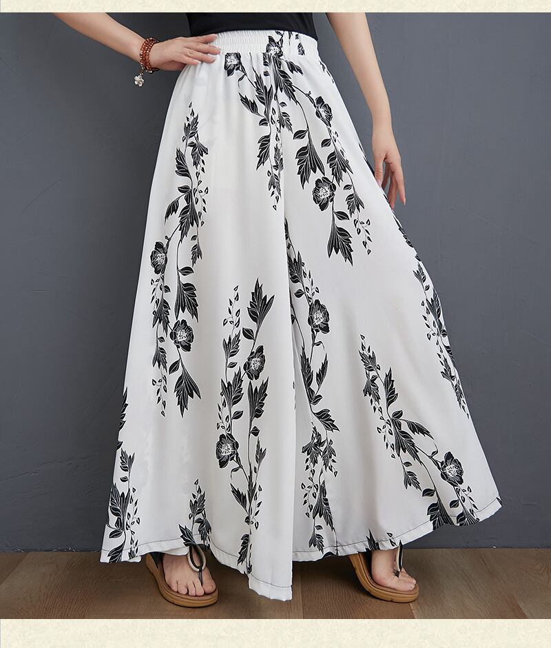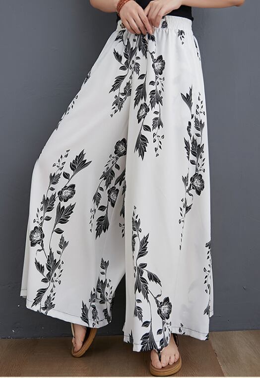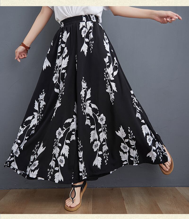 ボトムス パンツ ワイドパンツ 膝下 ロング ロング丈 マキシ マキシ丈 9分丈 ワイド Aライン シフォン ハイウエスト ウエストゴム 薄手 きれいめ シンプル 大人 上品 おしゃれ お洒落 エスニック エキゾチック 大人可愛い 大人女子 こなれ感 ガーリー クール モード系 エレガント 柄 花柄 フラワー ボタニカル 春 夏 秋 20代 30代 40代 50代 レディース 女性用 ママ OL 通勤 学生 通学 デート お出かけ 女子会 休日 イベント リゾート 旅行