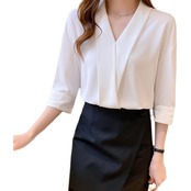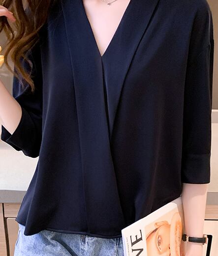 トップス デート ブラウス 半袖 五分袖 Vネック 襟付き 裾イン 透け感 薄手 シフォン きれいめ シンプル 大人 上品 おしゃれ 大人女子 こなれ感 クール セクシー エレガント フォーマル 無地 春 夏 入学式 入園式 卒業式 卒園式 謝恩会 冠婚葬祭 母の日 10代 20代 レディース 女性用 ママ オフィス OL 通勤 学生 通学 デート お出かけ イベント ホテル ガーデン レストラン ショッピング 着回し 重ね着 コーデ モテ M L XL 2XL 3XL 4XL 大きいサイズ 黒 白