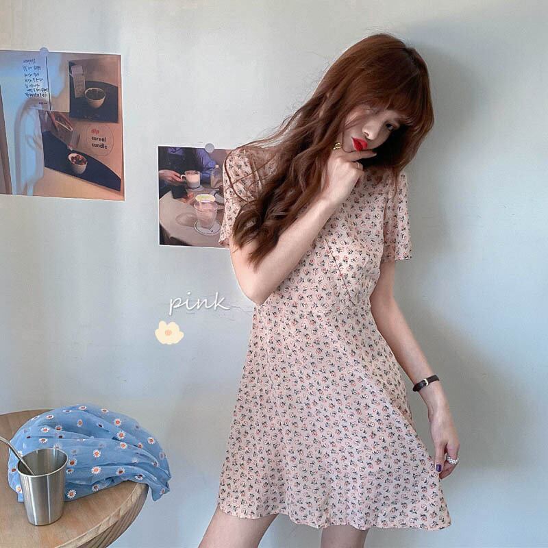 ワンピース デート フレアワンピース ショート丈 膝上 半袖 Vネック 襟なし フレア スリム 細身 シフォン 透け感 薄手 かわいい きれいめ カジュアル 上品 おしゃれ 大人可愛い 大人女子 ラブリー キュート セクシー 花柄 小花柄 フラワー 夏 誕生日 10代 20代 レディース 女性用 通勤 学生 デート お出かけ 女子会 お泊まり 休日 パーティー イベント リゾート 旅行 プール 高原 レストラン ショッピング 楽ちん モテ 美脚 脚長 ギフト インスタ映え S M L XL 青 ピンク