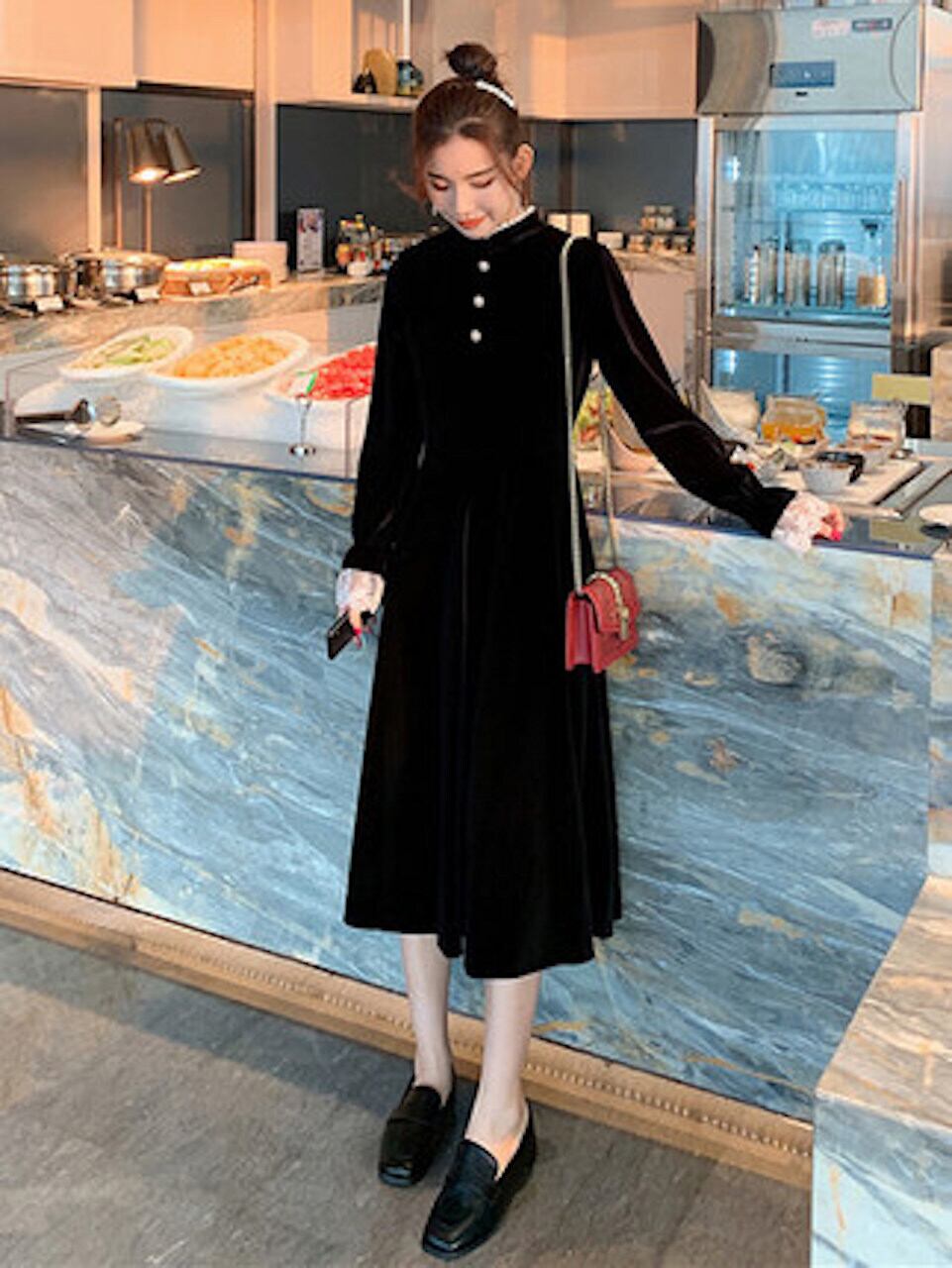 個性的 ワンピース フレアワンピース 膝下 ミモレ ミモレ丈 袖あり 長袖 ハイネック スリム 細身 Aライン レース ベルベット かわいい 大人可愛い きれいめ 大人 上品 おしゃれ お洒落 レトロ 大人女子 こなれ感 ラブリー キュート ガーリー 個性的 エレガント フォーマル とろみ感 無地 秋 冬 誕生日 結婚式 二次会 披露宴 バレンタイン 10代 20代 30代 レディース デート 女子会 パーティー イベント ホテル 美脚 脚長 トレンド 流行 インスタ映え