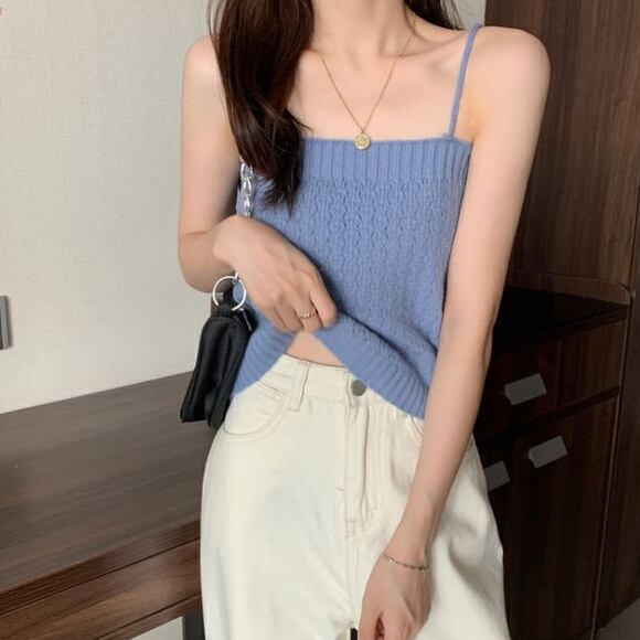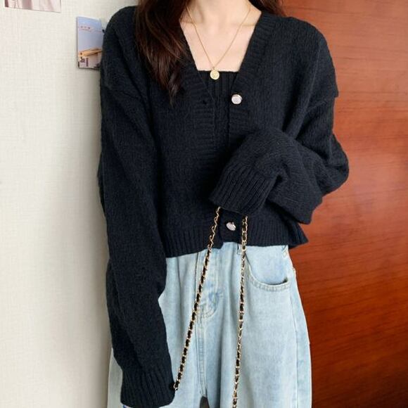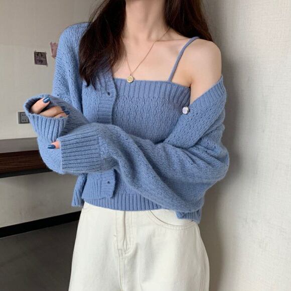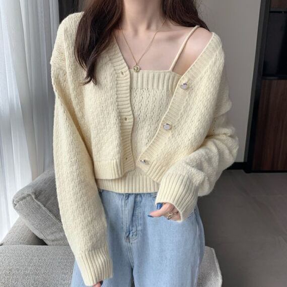 ニットキャミソールとカーディガンの2点セット。