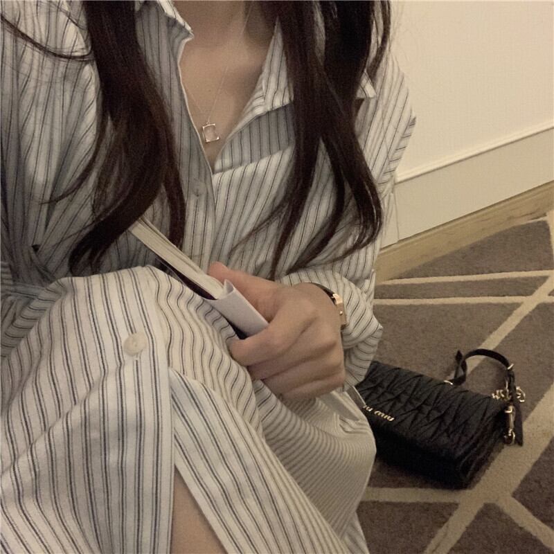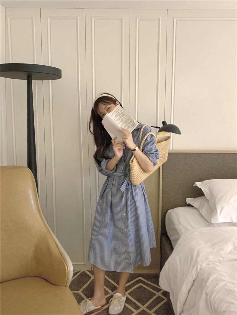 ストライプ シャツ ワンピース ロングスカート シャツワンピース ロング ロング丈 ミディアム丈 長袖 襟付き ストレート Aライン ウエストマーク ウエストリボン ハイウエスト 前開き かわいい 大人可愛い カジュアル 大人 おしゃれ 大人女子 こなれ感 ラフ ラブリー キュート ガーリー ルーズ 存在感 抜け感 柄 格子縞 春 秋 10代 20代 30代 ママ マタニティ 学生 通学 デート お出かけ 公園デビュー 女子会 休日 着回し 普段使い ゆったり サイズ 色展開 白 ホワイト 青 ブルー