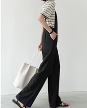 サロペット オールインワン ジャンプスーツ ボトムス パンツ ワイドパンツ ロング ノースリーブ スクエアネック ストレート ワイド ポケット ハイウエスト かわいい 大人可愛い シンプル カジュアル 大人 おしゃれ 大人女子 こなれ感 ラフ メンズライク マニッシュ ルーズ 抜け感 無地 夏 10代 20代 30代 レディース ママ 学生 通学 デート お出かけ 公園デビュー 休日 アウトドア 着回し 普段使い 重ね着 楽ちん 体系カバー 脚長 サイズ S M L 色展開 黒 ブラック 茶色 ブラウン