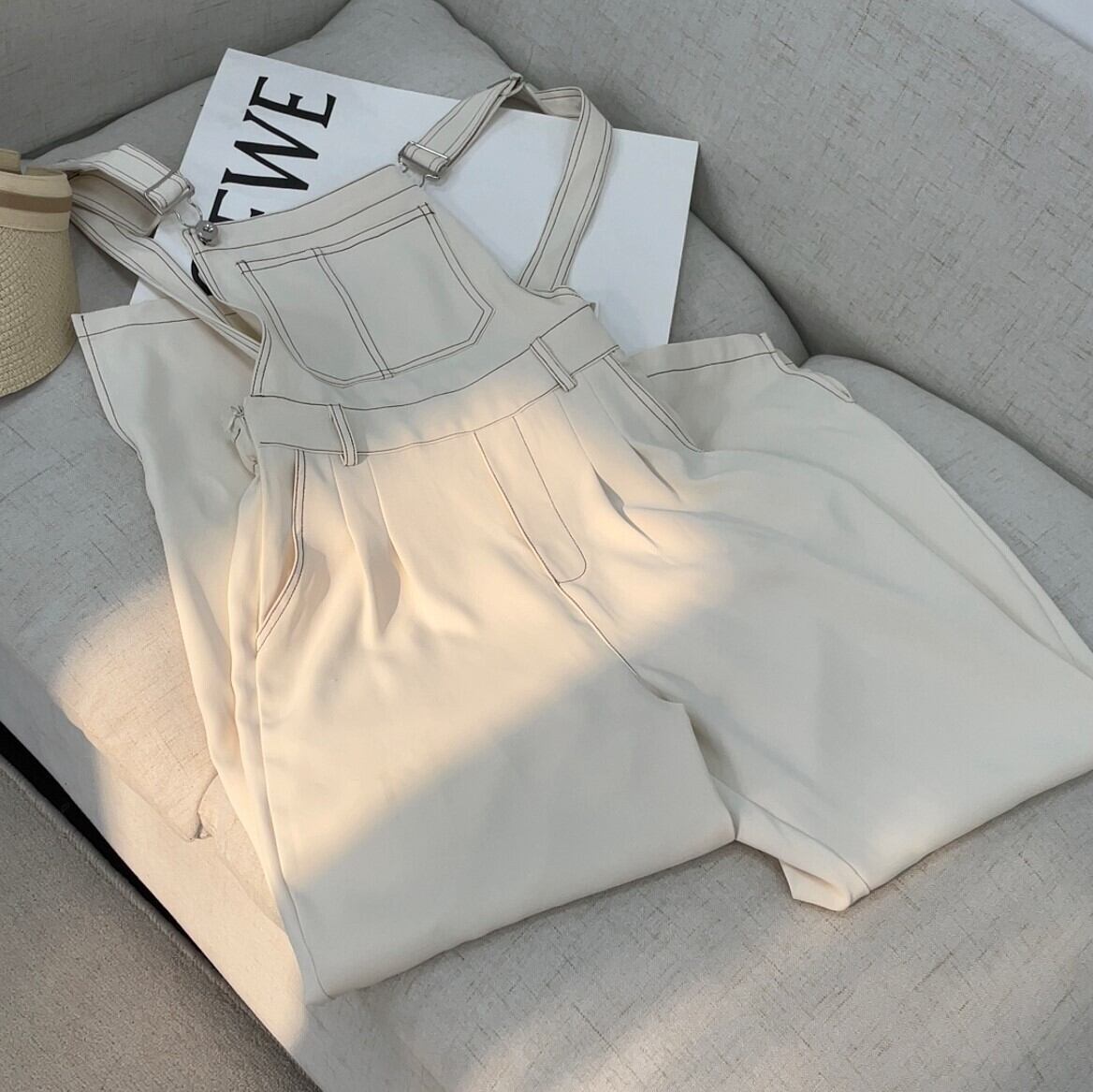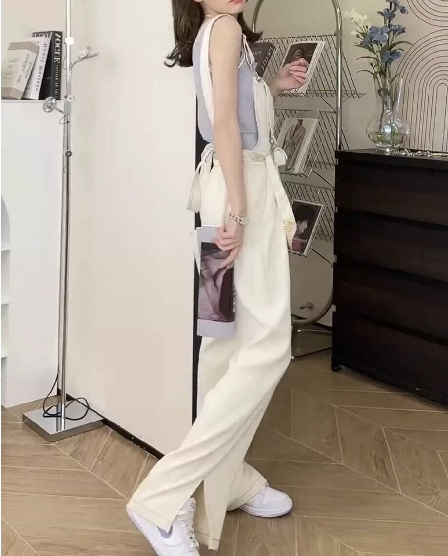 オーバーオール サロペット ボトムス パンツ ワイドパンツ ストレートパンツ ロング ロング丈 ノースリーブ ストレート スリット ポケット かわいい 大人可愛い きれいめ シンプル カジュアル 大人 おしゃれ お洒落 かっこいい レトロ こなれ感 ラフ メンズライク マニッシュ ボーイッシュ 個性的 存在感 抜け感 無地 春 夏 10代 20代 30代 レディース ママ 学生 通学 お出かけ 公園デビュー アウトドア 着回し 普段使い 重ね着 楽ちん 体系カバー 脚長 サイズ M 色展開 白 ホワイト