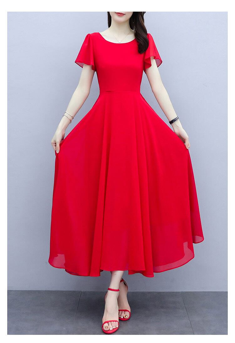 ロングドレス ブラック レッド 小さいサイズ 大きいサイズ ドレス ワンピース パーティードレス Aラインドレス ワンピースドレス ワンピドレス 膝下 ロング ロング丈 袖あり 半袖 ラウンドネック 襟なし Aライン ウエストマーク ウエストリボン バックリボン ハイウエスト かわいい 大人可愛い きれいめ 大人 上品 おしゃれ お洒落 大人女子 ラブリー キュート ガーリー エレガント 存在感 華やか クラシック 王道 お嬢様 無地 10代 20代 30代 40代 50代 レディース 女性用 ママ