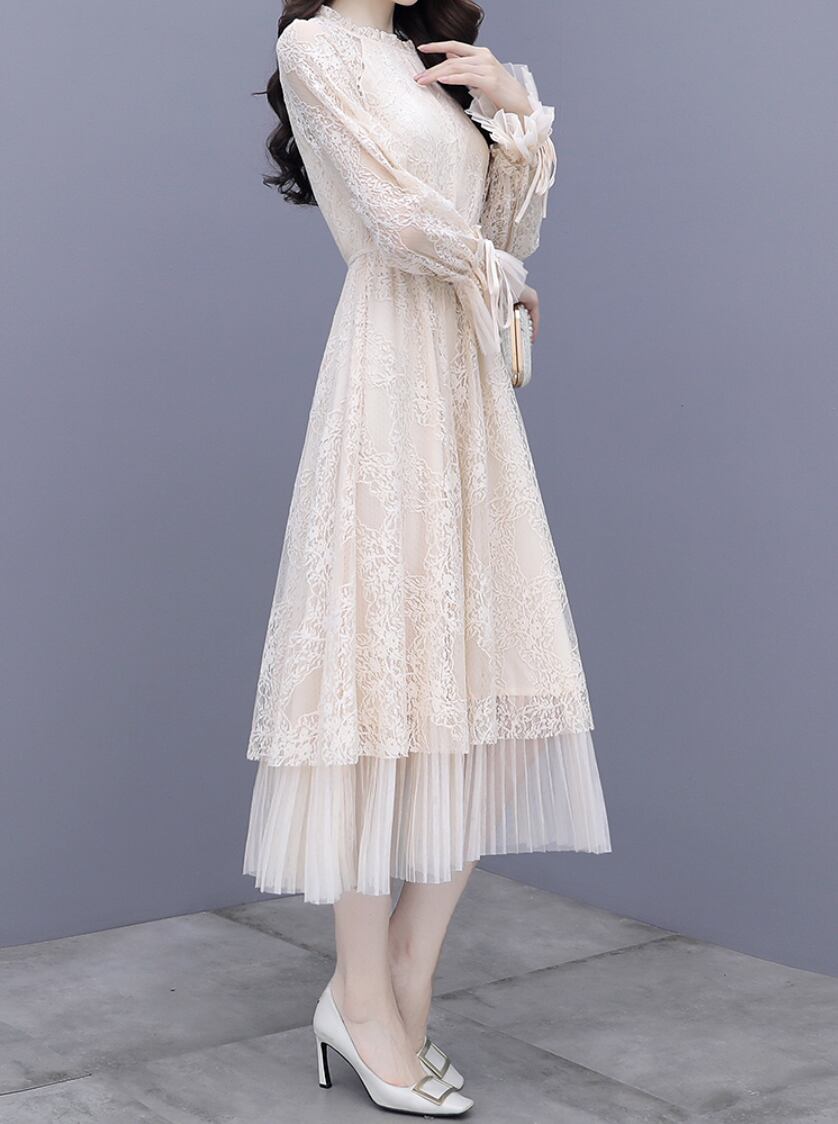 華やか レース ワンピース フレアワンピース ワンピドレス ミモレ丈 袖あり 長袖 ラウンドネック 襟付き Aライン レース チュール かわいい 大人可愛い きれいめ 大人 上品 おしゃれ 大人女子 こなれ感 キュート セクシー エレガント 主役級 存在感 花柄 オールシーズン 10代 20代 30代 レディース 女性用 デート お出かけ 休日 パーティー イベント 旅行 ホテル レストラン ファッション コーデ スタイル モテ 美脚 脚長 ギフト S M L XL 色展開 ホワイト ブラック 大人カラー