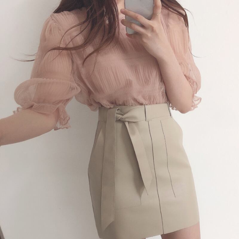 プリーツシャツ キャンディースリーブ シフォンシャツ トップス シャツ プルオーバー 袖あり 半袖 5分袖 五分袖 ボリューム袖 パフスリーブ Uネック ラウンドネック ストレート スマート プリーツ シフォン フリル 透け感 伸縮性 かわいい 大人可愛い きれいめ シンプル カジュアル 大人 上品 おしゃれ お洒落 大人可愛い 大人女子 こなれ感 ラブリー キュート ガーリー エレガント 主役級 存在感 とろみ感 無地 春 夏 秋 20代 30代 40代 レディース 女性用