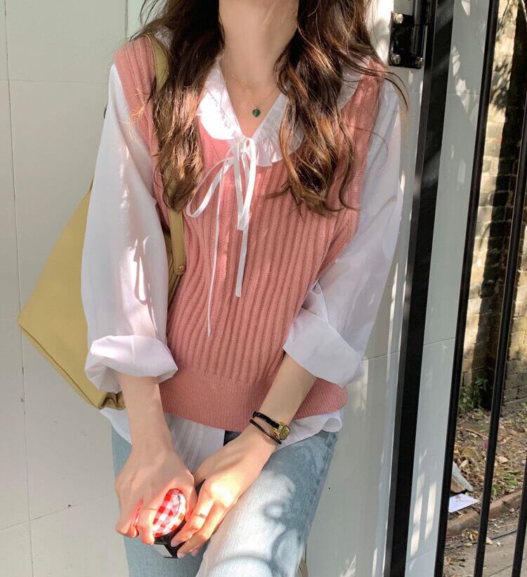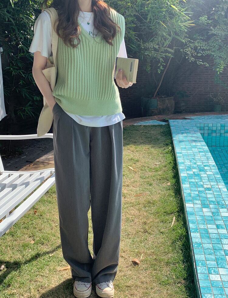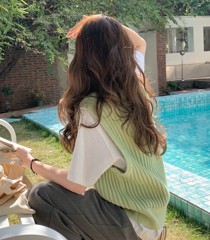 トップス ベスト Vネック ニット きれいめ シンプル 上品 おしゃれ 大人可愛い 大人女子 通勤 通学 着回し 重ね着 韓国系 ファッション S M L XL 2XL 青 ブルー 緑 グリーン ベージュ ピンク パステルカラー AS10066