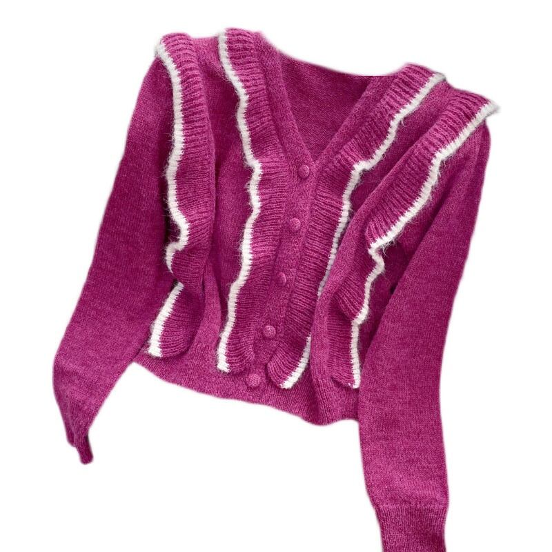 トップス ニットソー カーディガン 袖あり 長袖 Vネック 襟なし 切り替えデザイン スマート 着やせ フリル ハイウエスト 前開き 編み込み ステッチ コントラスト ニット かわいい おしゃれ レトロ アジアン こなれ感 ラブリー キュート ルーズ 個性的 ユニーク 存在感 抜け感 フェアリー 妖精 柄 10代 20代 レディース 女性用 学生 通学 デート お出かけ 着回し 普段使い 重ね着 コーデ スタイル S M L XL ゆったり 色展開 白 ホワイト 緑 グリーン 灰色 グレー ピンク