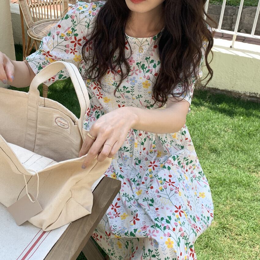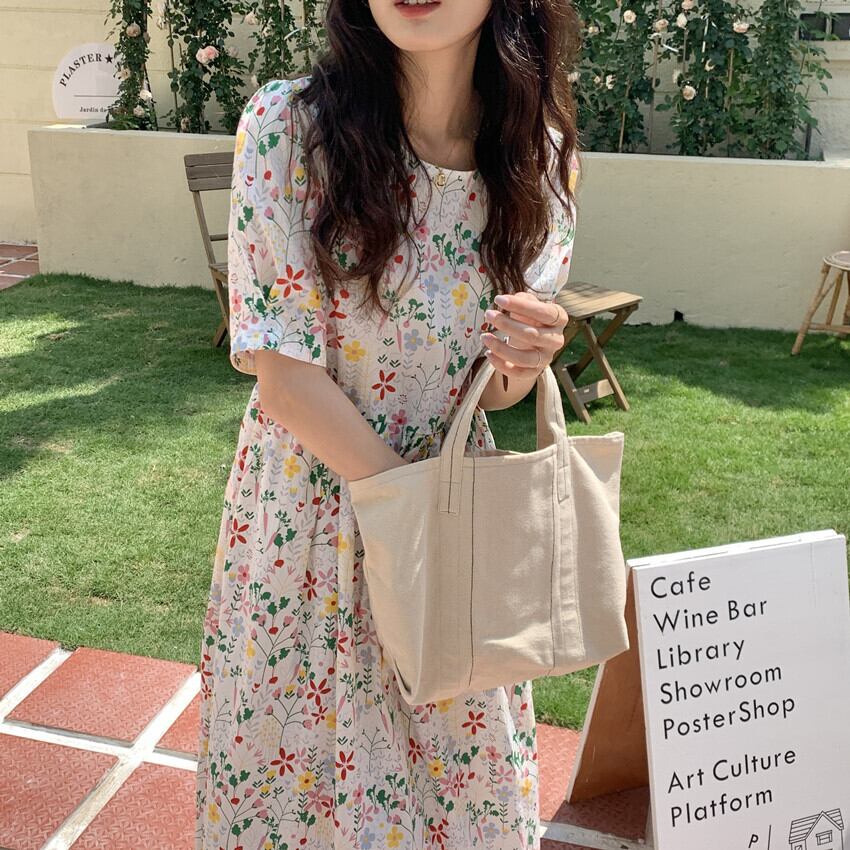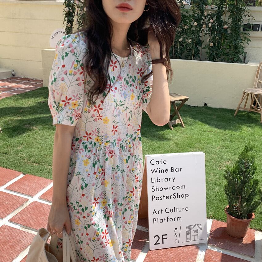 ワンピース 膝下 ミモレ ミモレ丈 ロング ロング丈 袖あり 5分袖 五分袖 パフスリーブ Uネック ラウンドネック 襟なし フレア ストレート ハイウエスト かわいい 大人可愛い カジュアル おしゃれ レトロ アジアン エスニック こなれ感 ラフ ラブリー キュート ルーズ 抜け感 ヴィンテージ ヨーロッパ風 フランス風 柄 花柄 小花柄 フラワー 春 夏 10代 20代 30代 レディース 女性用 ママ マタニティ 普段使い ファッション スタイル 体系カバー 大きいサイズ フリーサイズ 白 ホワイト