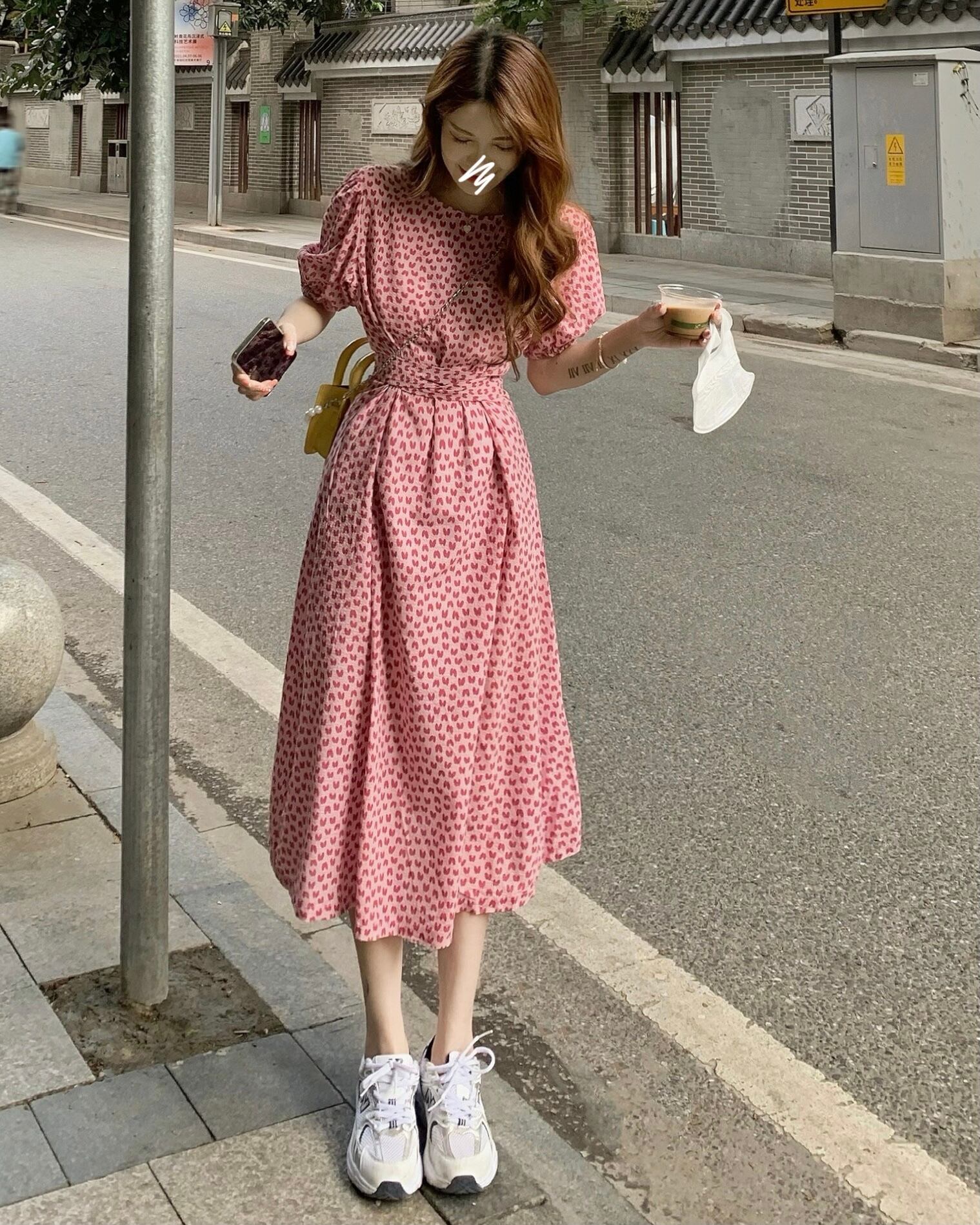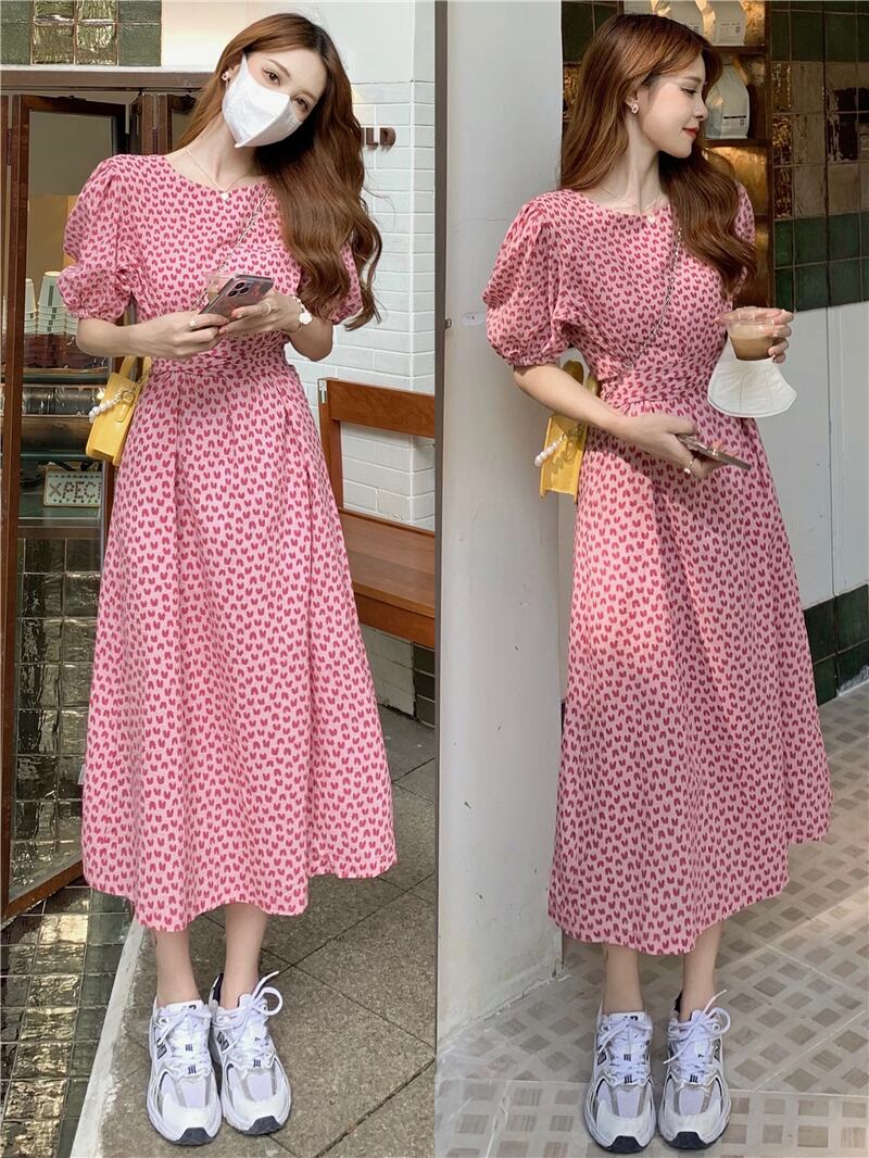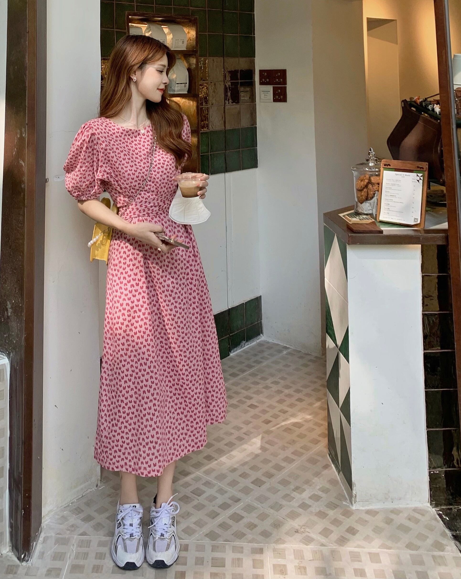 個性的 ワンピース 膝下 ミモレ ミモレ丈 袖あり 5分袖 五分袖 ボリューム袖 パフスリーブ Uネック ラウンドネック 襟なし フレア セミフレア スリム 細身 Aライン スマート 着やせ かわいい 大人可愛い カジュアル 大人 おしゃれ かっこいい レトロ アジアン こなれ感 ラブリー キュート 存在感 ヴィンテージ ヨーロッパ風 柄 ハート 春 夏 10代 20代 レディース 女性用 デート お出かけ 休日 着回し 普段使い 韓国 ファッション スタイル 楽ちん 体系カバー 脚長 S M L XL