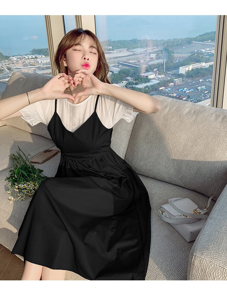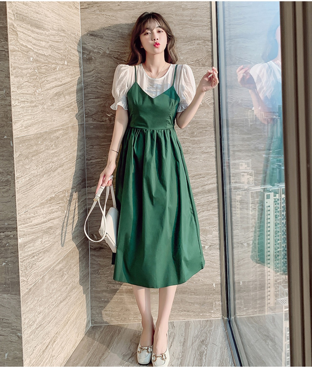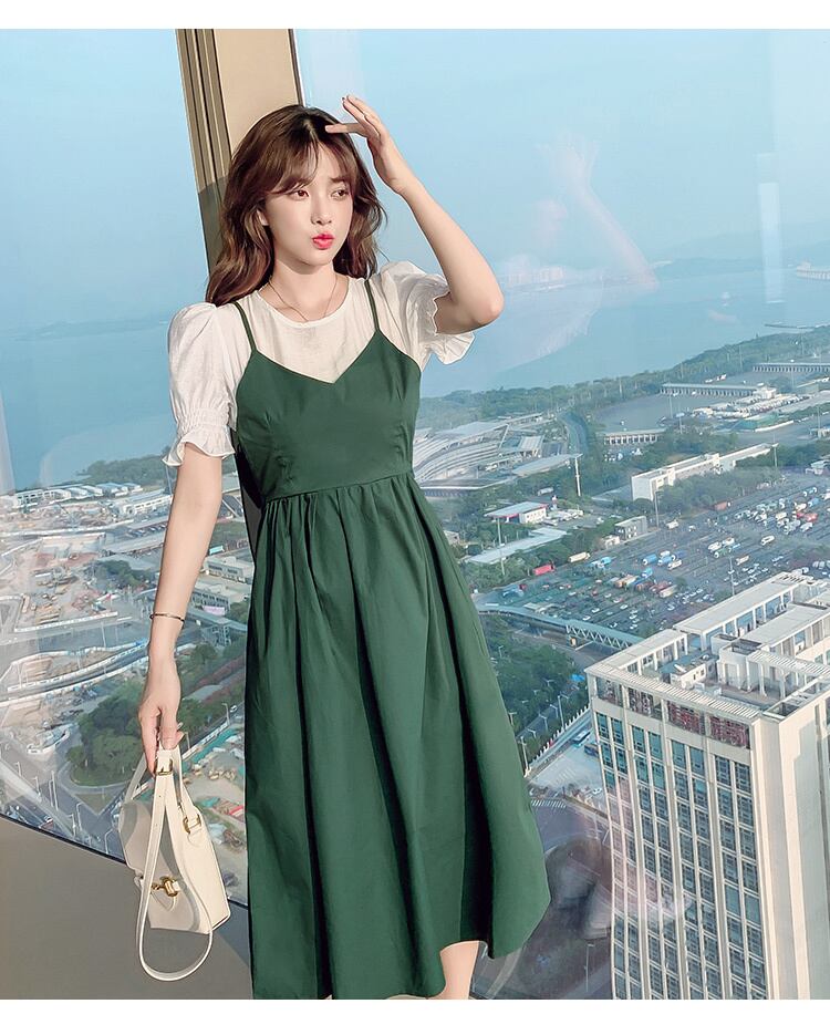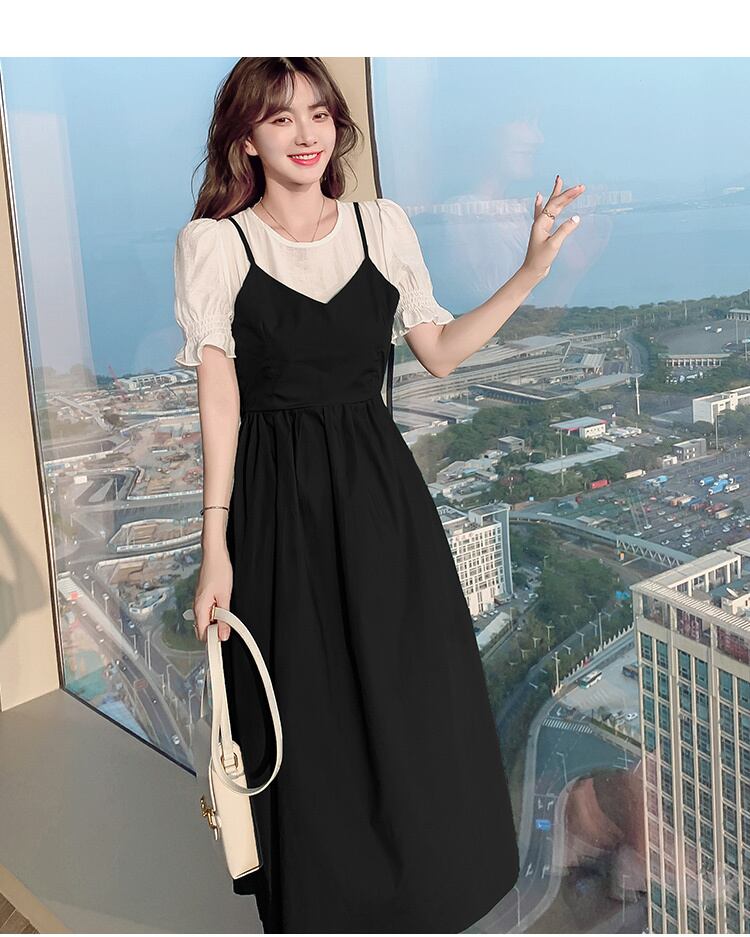 インナーシャツを着ているように見えるフェイクツーピースのワンピース。