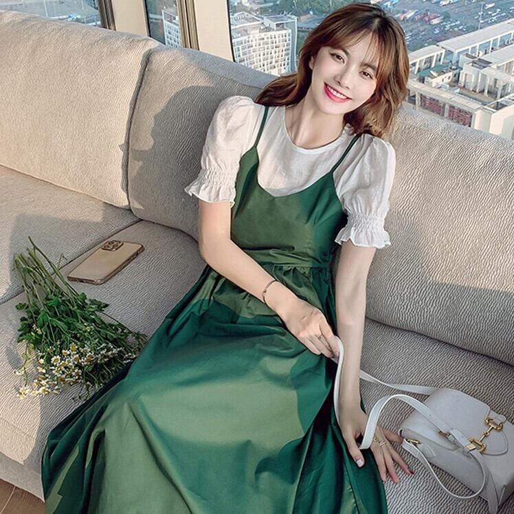 ワンピース セットアップ シャツ ブラウス 膝下 ミモレ ミモレ丈 ロング ロング丈 袖あり ボリューム袖 パフスリーブ ラウンドネック Aライン リボン ウエストマーク バックリボン 切り替えデザイン ハイウエスト かわいい 大人可愛い シンプル カジュアル おしゃれ レトロ アジアン ラフ メンズライク キュート 抜け感 無地 10代 20代 レディース デート お出かけ 休日 普段使い コーデ スタイル 楽ちん 体系カバー S M L XL 2XL 大きいサイズ 黒 ブラック 緑 グリーン
