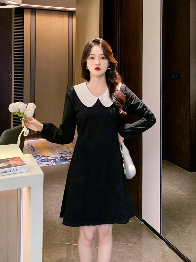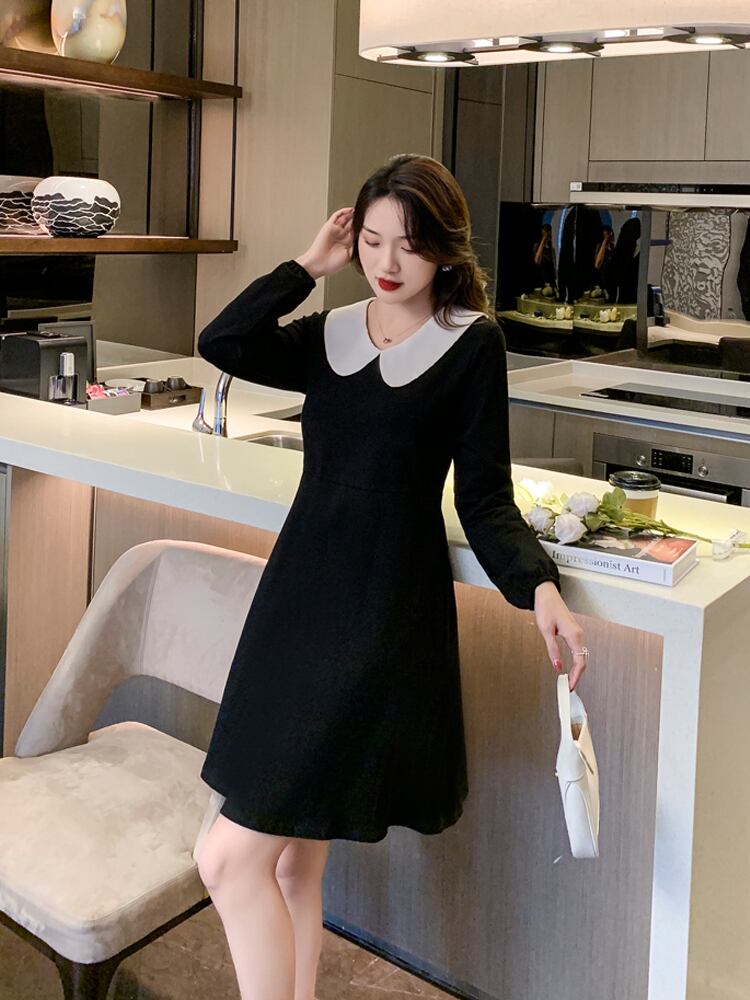 ワンピース 膝丈 ひざ丈 膝上 袖あり 長袖 襟付き フレア セミフレア 薄手 かわいい 大人可愛い きれいめ シンプル 大人 上品 かっこいい 大人可愛い 大人女子 こなれ感 ラブリー キュート 無地 春 秋 冬 20代 30代 40代 レディース 女性用 ビジネス OL 通勤 学生 デート お出かけ 公園デビュー 女子会 休日 高原 ショッピング 着回し 普段使い 重ね着 お揃い コーデ スタイル 体系カバー サイズ M L XL 2XL 3XL