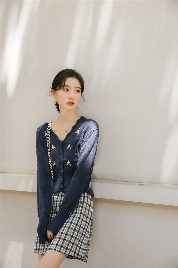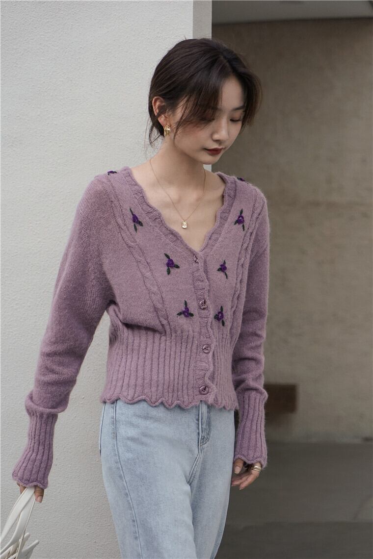 トップス カーディガン ショート ショート丈 長袖 萌袖 Vネック スリム 細身 ストレート スマート 着やせ 刺繍 ハイウエスト かわいい 大人可愛い シンプル カジュアル 大人 おしゃれ レトロ アジアン 大人女子 こなれ感 ラフ メンズライク ラブリー ルーズ モダン 抜け感 柄 花柄 小花柄 フラワー 秋 10代 20代 レディース 女性用 OL 通勤 学生 通学 デート お出かけ 休日 着回し 普段使い 重ね着 お揃い 韓国系 ファッション コーデ スタイル フリーサイズ パープル ネイビー