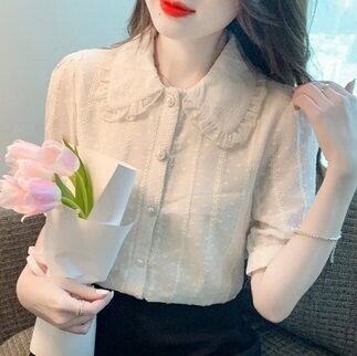 レース 刺繍 シフォン ブラウス トップス シャツ カットソー カーディガン 白トップス 半袖 パフスリーブ 襟付き ストレート 前開き クロシェ 編み込み 透け感 薄手 かわいい 大人可愛い きれいめ カジュアル 大人 上品 おしゃれ レトロ 大人女子 こなれ感 ラブリー キュート ガーリー 抜け感 無地 春 夏 10代 20代 30代 レディース オフィス OL 通勤 学生 通学 デート お出かけ 女子会 休日 着回し 普段使い 重ね着 モテ サイズ S M L XL 2XL 色展開 白 ホワイト