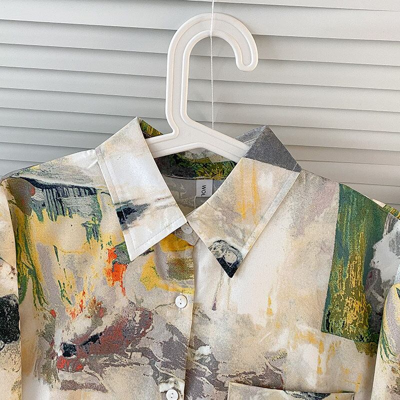 絵具を混ぜたようなデザインが個性的なシャツ。