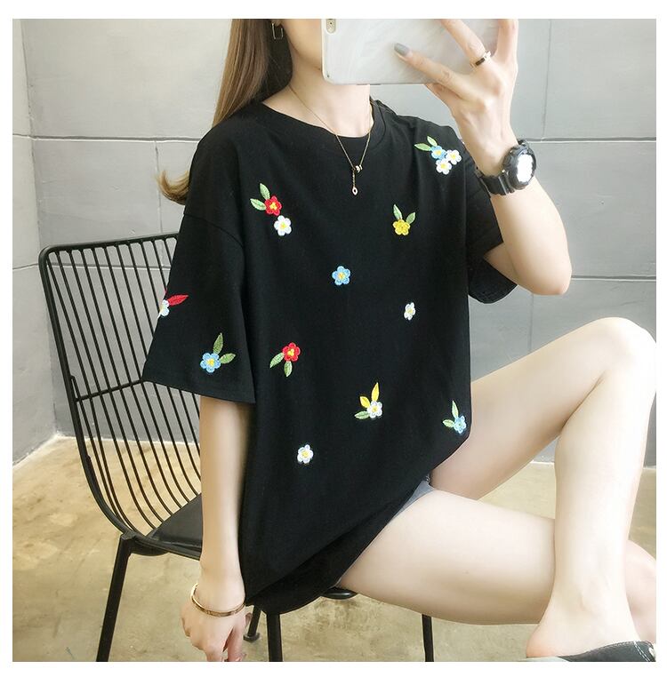 トップス ルームウェア Tシャツ レギュラー丈 半袖 ラウンドネック ストレート 刺繍 伸縮性 綿 薄手 かわいい シンプル カジュアル お洒落 ラフ スポーティー ルーズ 無地 夏 誕生日 母の日 10代 20代 30代 女性用 ママ 通勤 学生 通学 デート お出かけ 公園デビュー 女子会 お泊まり 休日 運動 ヨガ アウトドア リゾート 旅行 海 プール 高原 ショッピング 着回し 普段使い お揃い 楽ちん 体系カバー ギフト 定番 M L XL 2XL 3XL ゆったり 黒 黄色 ピンク