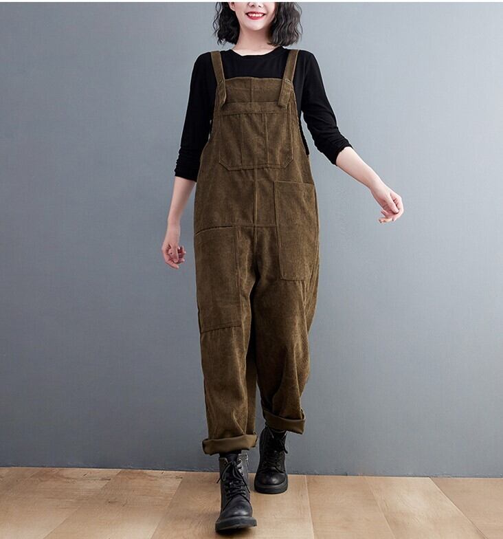 サロペット オーバーオール コーデュロイ オールインワン ロング ノースリーブ ストレート ワイド ポケット リブ かわいい 大人可愛い シンプル カジュアル おしゃれ 大人女子 こなれ感 ラフ メンズライク マニッシュ ボーイッシュ 個性的 抜け感 無地 秋 冬 10代 20代 30代 レディース ママ 学生 通学 お出かけ 公園デビュー 休日 着回し 普段使い 重ね着 楽ちん 暖かい 体系カバー サイズ M L XL 2XL 大きいサイズ ゆったり ゆる サイズ 色展開 黒 ブラック 茶色 ブラウン