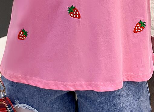 トップス ルームウェア Tシャツ レギュラー丈 半袖 ラウンドネック ストレート 刺繍 伸縮性 コットン かわいい 大人可愛い シンプル カジュアル おしゃれ お洒落 ラフ ラブリー ルーズ 個性的 存在感 無地 柄 いちご 夏 誕生日 母の日 10代 20代 女性用 ママ 通勤 デート お出かけ 公園デビュー 女子会 休日 運動 ヨガ アウトドア イベント リゾート 旅行 海 プール ショッピング 着回し 重ね着 お揃い 楽ちん モテ 体系カバー ギフト S M L XL ゆる 黒 白 ピンク