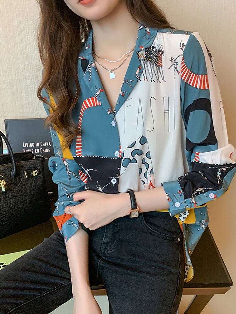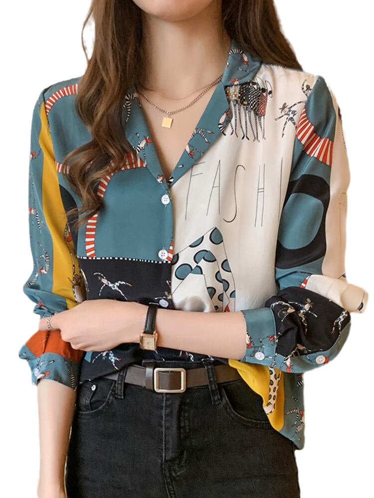トップス シャツ ブラウス 袖あり 長袖 Vネック 襟付き シフォン 前開き かわいい 大人可愛い カジュアル 大人 おしゃれ お洒落 かっこいい レトロ こなれ感 ラフ メンズライク キュート 個性的 クール 主役級 存在感 とろみ感 柄 春 夏 10代 20代 30代 レディース オフィス OL 学生 通学 デート お出かけ 公園デビュー 女子会 旅行 着回し 普段使い インスタ映え S M L XL 2XL