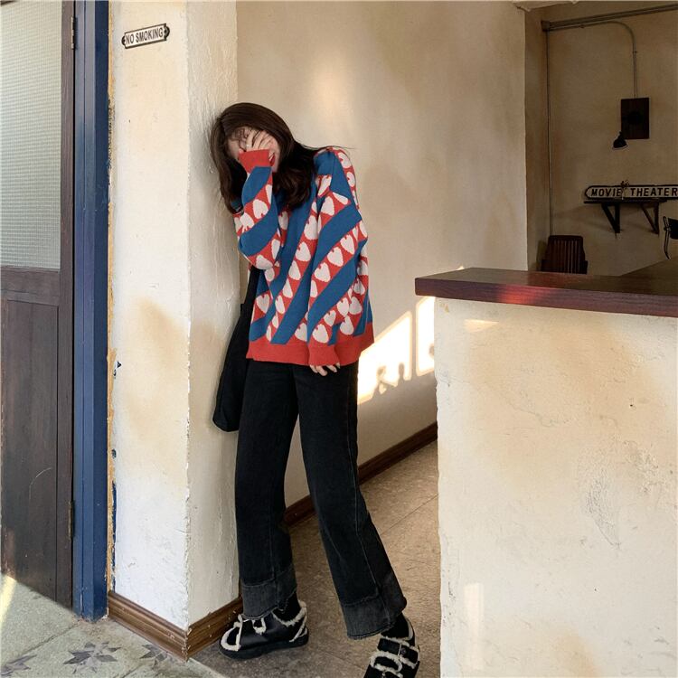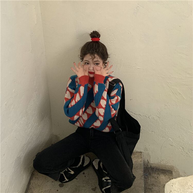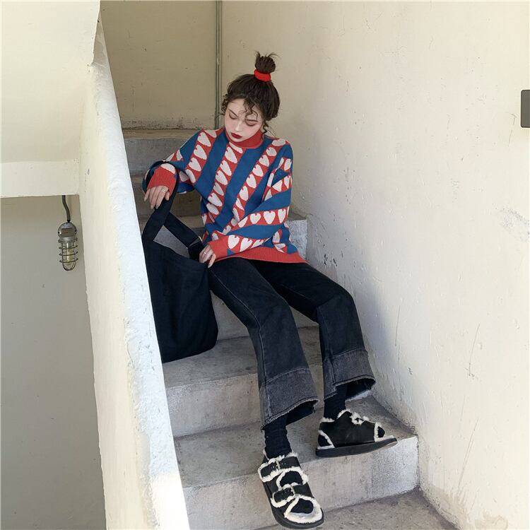 レトロ風 セーター トップス レギュラー丈 袖あり 長袖 萌袖 ハイネック タートルネック ストレート もこもこ ふわふわ 編み込み 伸縮性 厚手 かわいい カジュアル おしゃれ お洒落 レトロ ラフ ラブリー キュート ルーズ 柄 ストライプ ハート 秋 冬 誕生日 10代 20代 女性用 ママ 通勤 学生 通学 デート お出かけ 公園デビュー 女子会 お泊まり 休日 アウトドア 旅行 ショッピング 韓国系 香港風 楽ちん 防寒 体系カバー ギフト インスタ映え ゆる ワンサイズ 白 赤 青