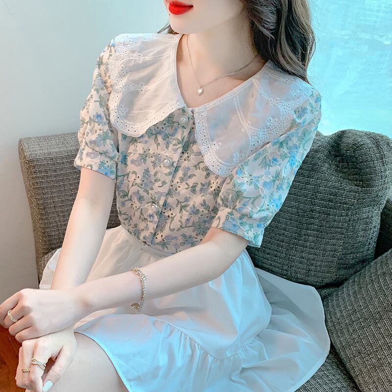 花柄シャツ 襟付きシャツ 大きめ襟 グリーン イエロー 大きいサイズ 小さいサイズ トップス シャツ ブラウス 袖あり 半袖 Vネック 襟付き レース ボタン パール かわいい おしゃれ お洒落 清楚 ラブリー キュート ガーリー 存在感 爽やか 柄 花柄 小花柄 フラワー 春 夏 秋 ロングシーズン 10代 20代 レディース 女性用 女の子 学生 デート お出かけ 女子会 休日 レストラン お茶会 ランチ ショッピング 着回し 普段使い 重ね着 オルチャン 体系カバー プレゼント ギフト プチプラ