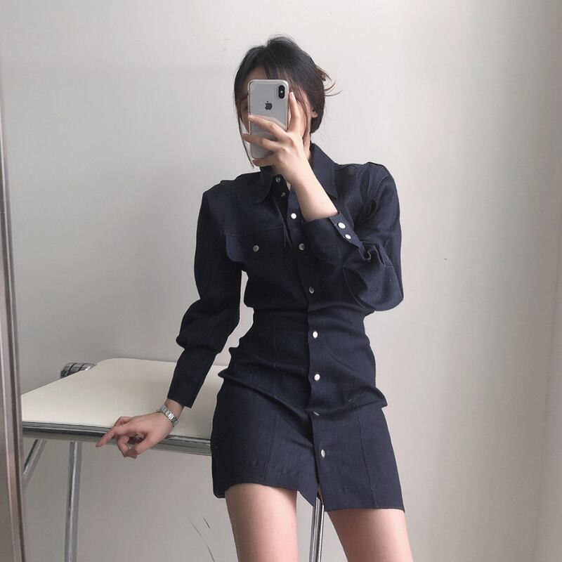 ワンピース シャツワンピース デニムワンピース ミニ ミニ丈 袖あり 長袖 襟付き スリム ウエストマーク ポケット デニム かわいい 大人可愛い シンプル カジュアル 大人 おしゃれ お洒落 かっこいい 大人女子 こなれ感 ラフ ラブリー キュート 個性的 セクシー 主役級 存在感 無地 春 夏 秋 10代 20代 30代 レディース 通勤 学生 通学 デート お出かけ 女子会 リゾート 旅行 着回し 普段使い オルチャン ファッション モテ インスタ映え S M L ネイビー