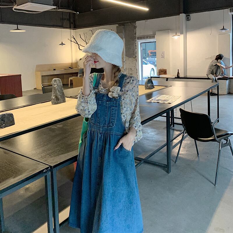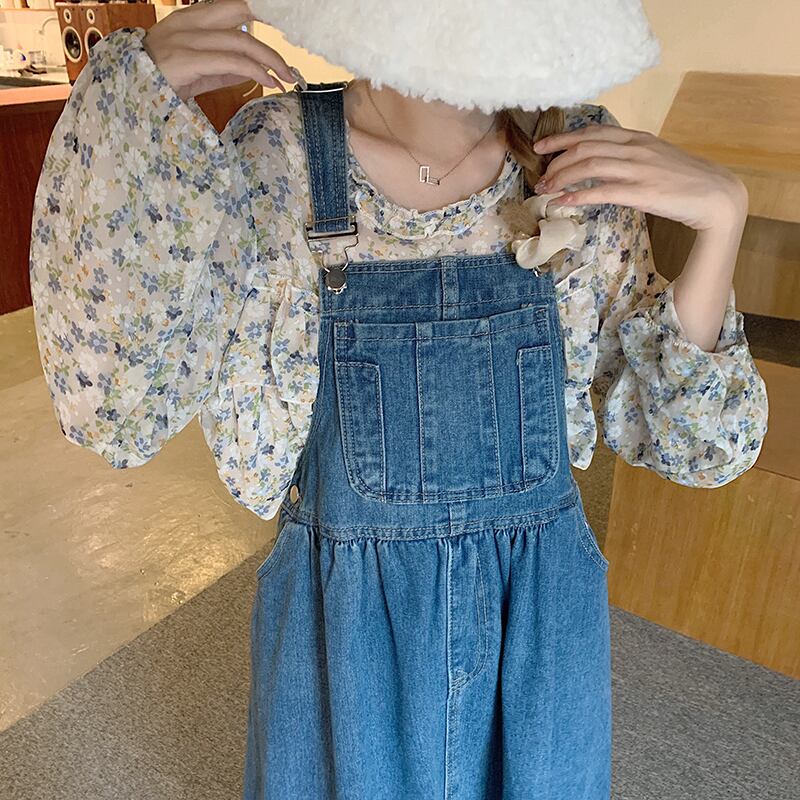 トップス ワンピース シャツ ブラウス サロペット デニムワンピース 膝下 ミモレ ミモレ丈 袖あり 長袖 Uネック 襟なし フレア ワイド Aライン ポケット デニム ブルーデニム 2点セット かわいい 大人可愛い シンプル カジュアル 大人 おしゃれ お洒落 かっこいい レトロ 大人女子 こなれ感 ラフ ラブリー キュート ガーリー ルーズ 個性的 抜け感 小花柄 春 夏 10代 20代 30代 レディース ママ デート お出かけ 公園デビュー 女子会 休日 旅行 着回し 普段使い コーデ 体系カバー
