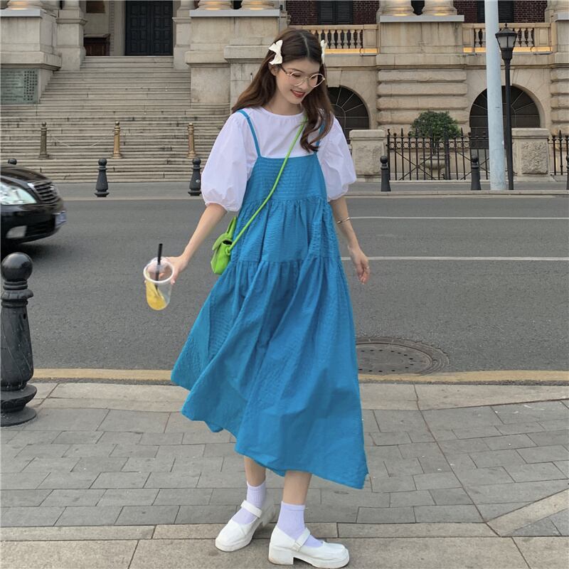 トップス ワンピース シャツ ブラウス フレアスカート ストラップワンピース 膝下 ミモレ ミモレ丈 袖あり 5分袖 五分袖 ボリューム袖 Uネック 襟なし フレア ワイド Aライン 2点セット かわいい 大人可愛い きれいめ シンプル カジュアル 大人 上品 おしゃれ お洒落 レトロ 大人女子 こなれ感 ラフ ラブリー キュート ガーリー ルーズ 個性的 抜け感 無地 春 夏 10代 20代 30代 レディース ママ お出かけ 公園デビュー 休日 普段使い 重ね着 体系カバー トレンド インスタ映え