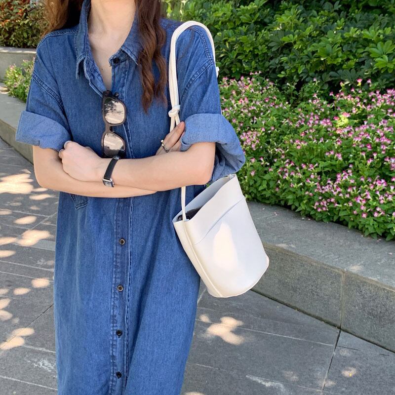 シルエットはすっきり見えが叶うIラインシルエットのデニムシャツワンピース