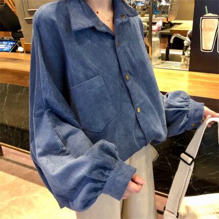 トップス シャツ レギュラー丈 長袖 萌袖 ポロカラー ストレート 前開き ポリエステル 薄手 コーデュロイ コットン カジュアル 大人 お洒落 レトロ 大人女子 ラフ キュート ルーズ クール 抜け感 無地 春 秋 クリスマス バレンタイン 10代 20代 レディース 通勤 学生 通学 デート お出かけ お泊まり 休日 アウトドア イベント 旅行 ショッピング 着回し 重ね着 韓国系 楽ちん 暖かい 体系カバー ギフト 安い インスタ映え 香港スタイル M L XL 2XL ゆる ブルー オレンジ