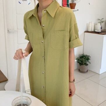 ゆったりとしたシルエットでリラックス感のあるシャツワンピース。