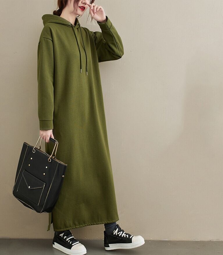 ゆったりシルエットで楽チンなパーカーロング丈ワンピース