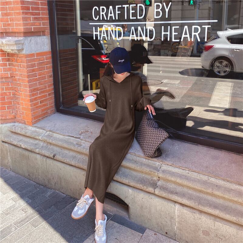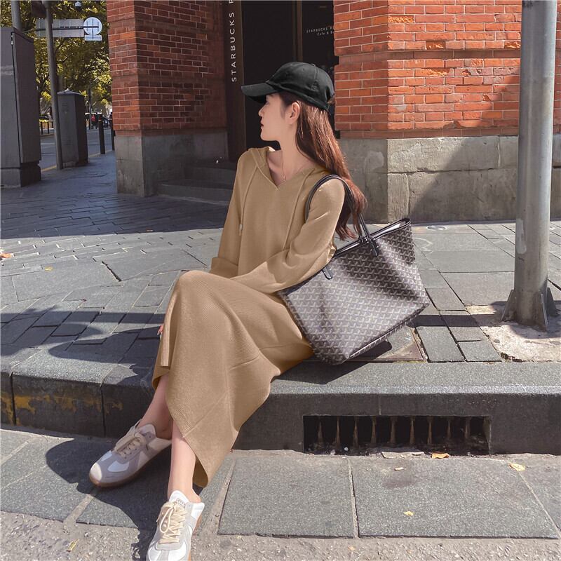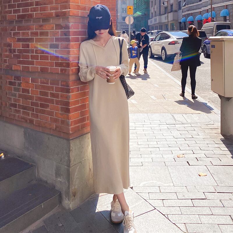 ニットワンピース ストレートワンピース 膝下 ミモレ ミモレ丈 ロング ロング丈 袖あり 長袖 萌袖 Vネック 襟なし ストレート Iライン スマート フード付き リブ リブニット 伸縮性 かわいい シンプル カジュアル おしゃれ ラフ ルーズ カレッジスタイル 無地 春 秋 10代 20代 30代 レディース 女性用 ママ 通勤 学生 通学 デート お出かけ 公園デビュー 着回し 普段使い コーデ 楽ちん フリーサイズ 黒 ブラック 茶色 ブラウン 黄色 ベージュ カーキ イエロー アプリコット