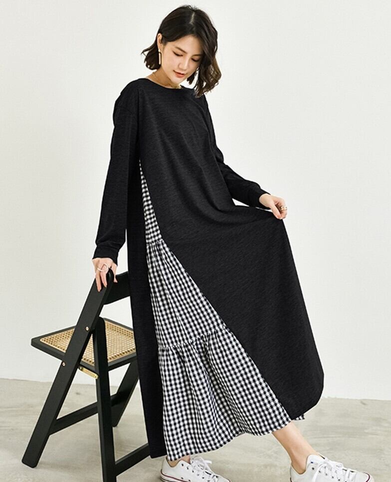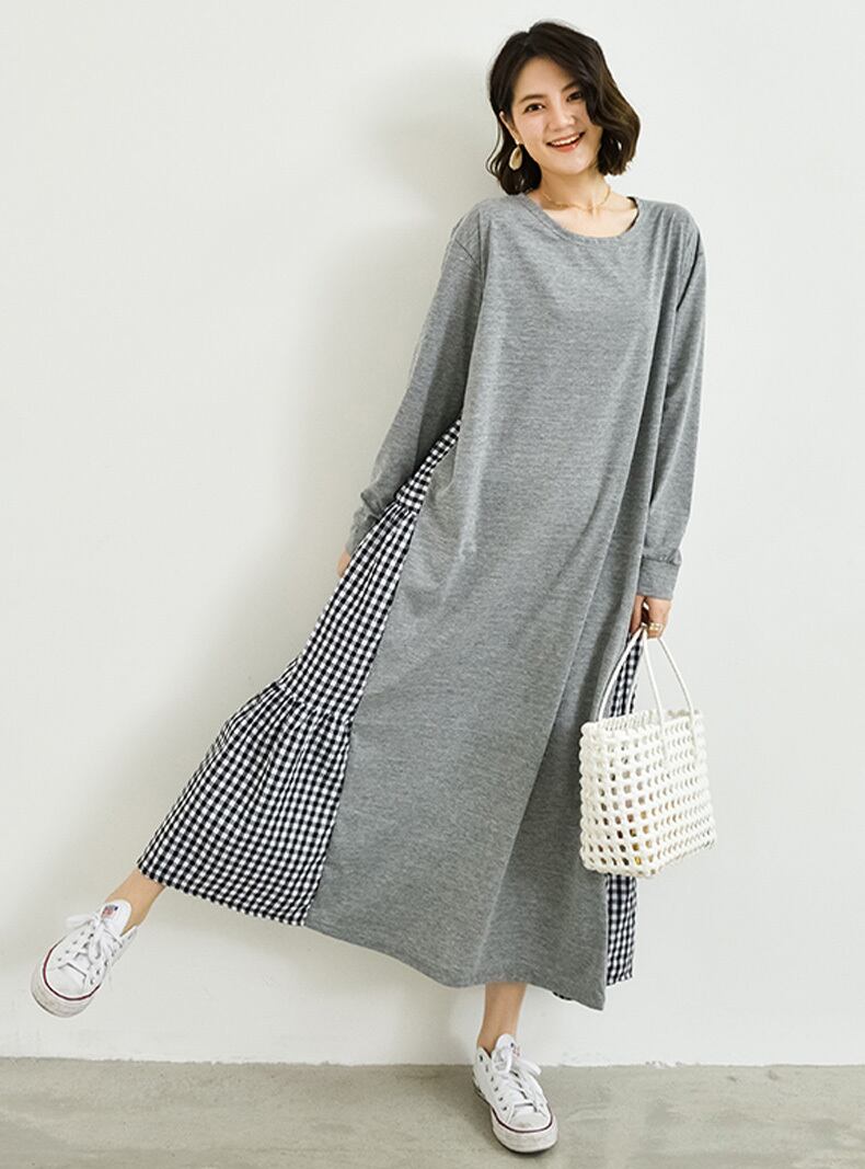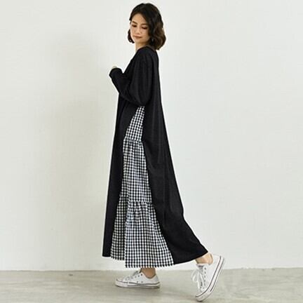 サイドにチェックの切り替えを入れた可愛いワンピース。