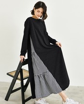 大きいサイズ ワンピース プルオーバー ロングスカート フレアワンピース ロング丈 9分丈 アンクル丈 長袖 ラウンドネック ワイド Aライン かわいい 大人可愛い シンプル カジュアル おしゃれ 大人女子 こなれ感 ラフ キュート ガーリー ルーズ 抜け感 無地 チェック柄 春 夏 10代 20代 30代 レディース ママ マタニティ 学生 通学 デート お出かけ 公園デビュー 女子会 休日 着回し 普段使い 楽ちん サイズ L XL 大きめ ゆったり ゆる サイズ 色展開 黒 ブラック 灰色 グレー