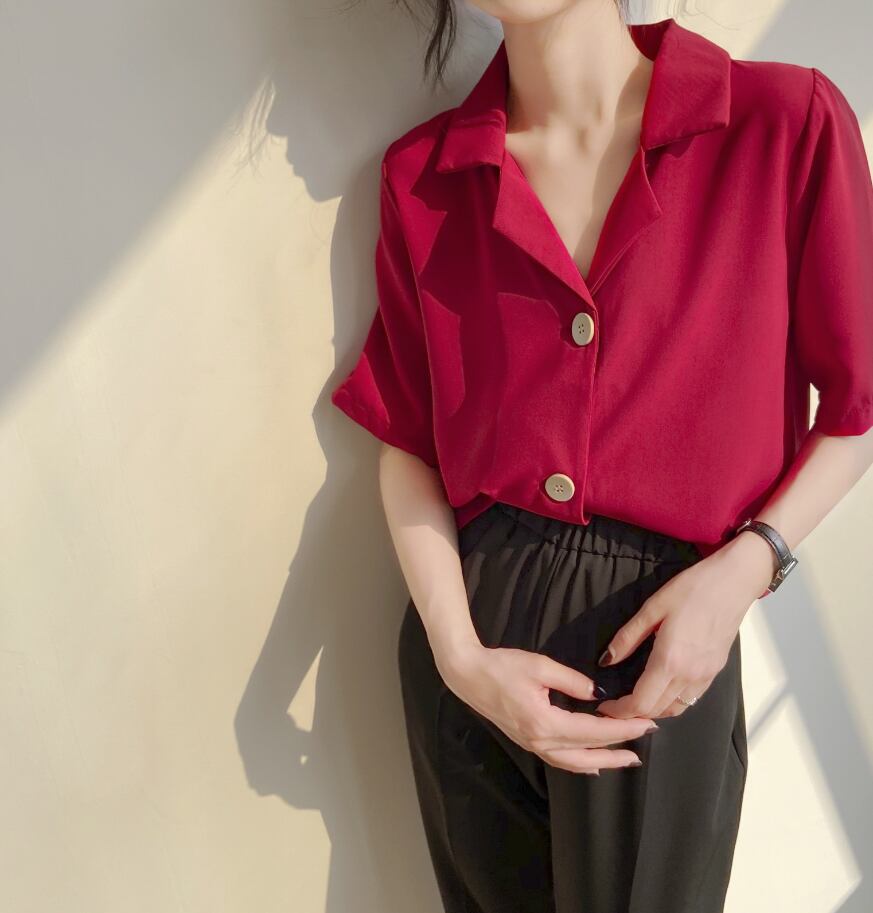 開襟シャツ トップス シャツ ブラウス 白シャツ ショート 袖あり 半袖 Vネック 襟付き 前開き かわいい 大人可愛い きれいめ シンプル カジュアル 大人 上品 おしゃれ 大人女子 こなれ感 キュート クール とろみ感 抜け感 無地 春 夏 10代 20代 30代 レディース ママ マタニティ オフィス OL 通勤 学生 デート お出かけ 女子会 休日 イベント リゾート 旅行 レストラン 着回し 普段使い 重ね着 コーデ スタイル 楽ちん 定番 XS S M L XL ホワイト 白 レッド 赤