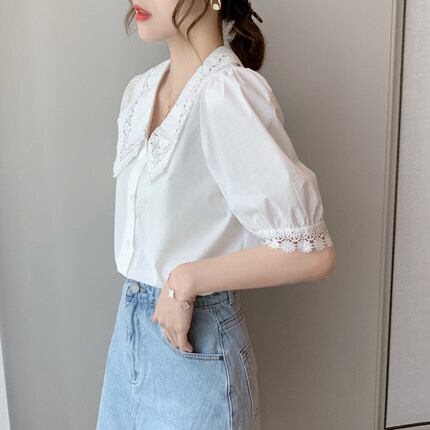 襟付きブラウス ホワイト 大きいサイズ 小さいサイズ トップス シャツ ブラウス 白シャツ 白トップス 袖あり 半袖 Vネック 襟付き レース 刺繍 かわいい 大人可愛い おしゃれ お洒落 清楚 ラブリー キュート ガーリー 存在感 知的 爽やか スマート 無地 春 夏 秋 ロングシーズン 10代 20代 レディース 女性用 女の子 学生 デート お出かけ 女子会 イベント お茶会 ランチ ショッピング 着回し 普段使い 韓国 韓国系 オルチャン モテ プレゼント ギフト 定番 S M L XL